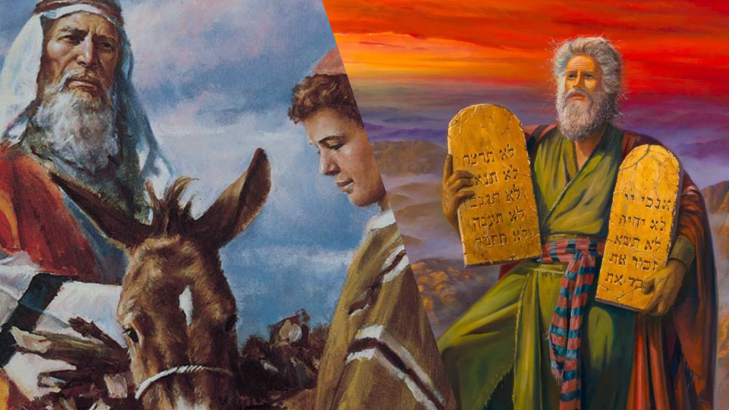 Según el relato bíblico, una gran hambruna llevó a Jacob y sus hijos a emigrar a Egipto, donde sus descendientes fueron esclavizados hasta la llegada de Moisés. El Éxodo o la huida de Egipto marcó un nuevo momento de la alianza. En el Monte Sinaí, Dios entregó a Moisés las tablas de la Ley, sellando un nuevo pacto exigía justicia y fidelidad. Finalmente, en Deuteronomio, se establece que la bendición o la maldición del pueblo dependerían de su obediencia a los mandamientos divinos.