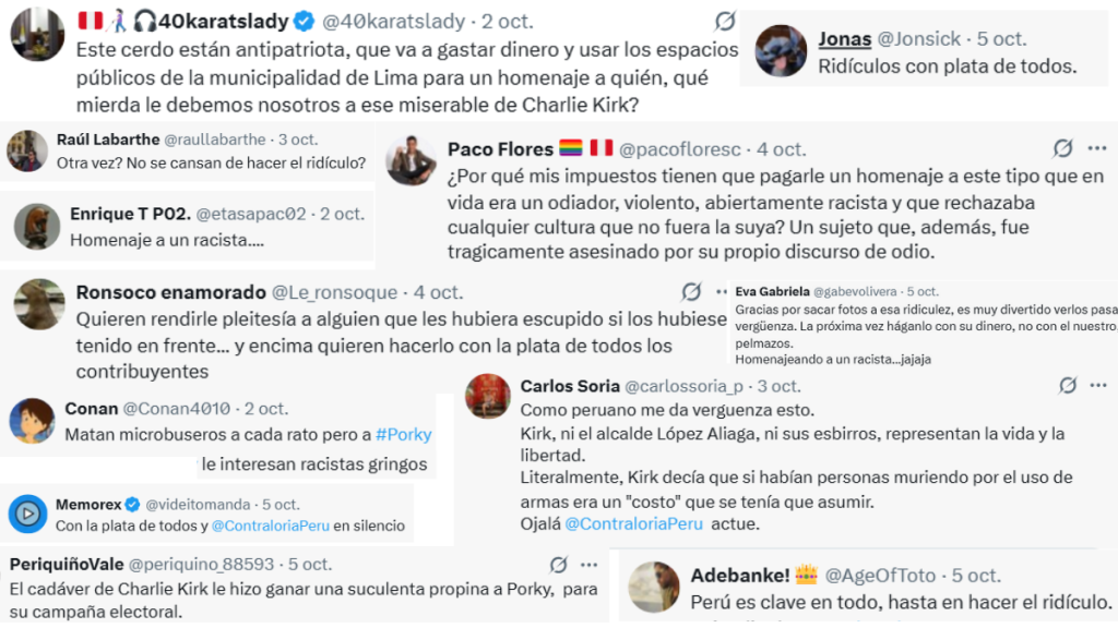 Varios comentarios también cuestionaron la doble moral de rendir honores a una figura extranjera mientras en el Perú líderes sociales y defensores ambientales son asesinados sin que el Estado ni las autoridades locales les brinden reconocimiento alguno.