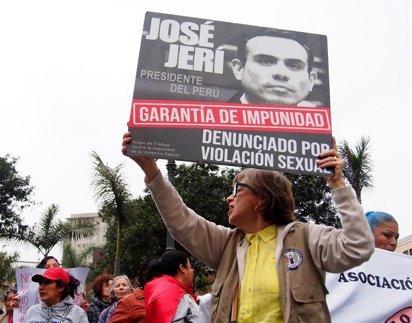 Tras asumir la presidencia, organizaciones feministas y colectivos universitarios revivieron las denuncias en redes y en las calles, denunciando que el Congreso impuso a un mandatario “cuestionado moralmente y sin legitimidad social”.