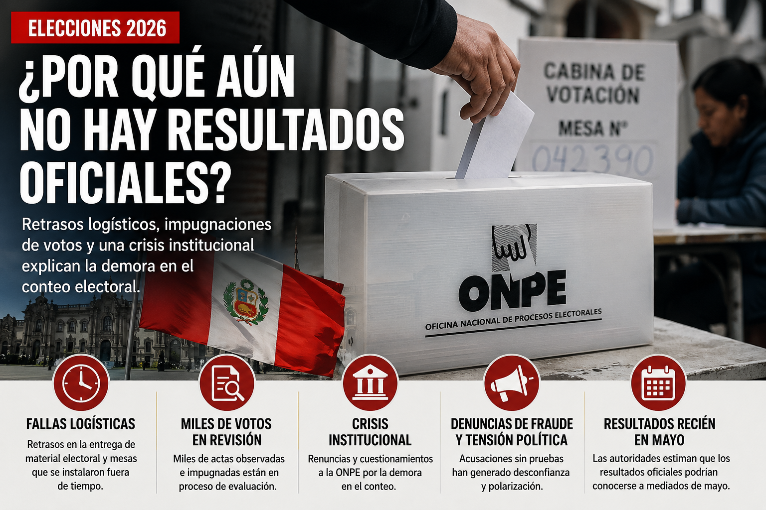 A más de dos semanas de celebradas las elecciones generales del 12 de abril de 2026, el Perú continúa sin resultados oficiales definitivos, generando incertidumbre política y cuestionamientos en la ciudadanía.